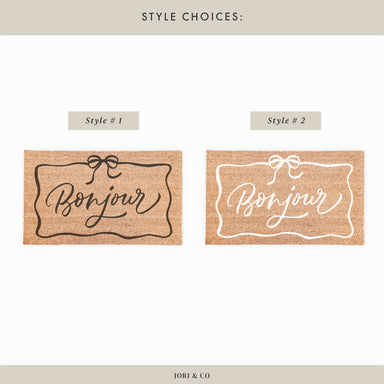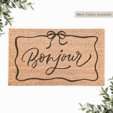 Bonjour With Coquette Bow Border Doormat