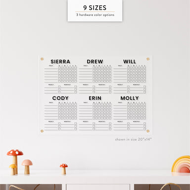Personalized Kid's Acrylic Chore Chart for Six Kids