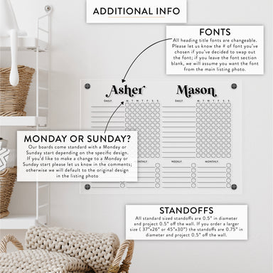 Personalized Kid's Acrylic Chore Chart for 2 Kids