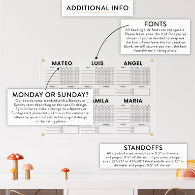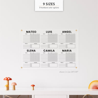 Personalized Kid's Acrylic Chore Chart for Six Kids